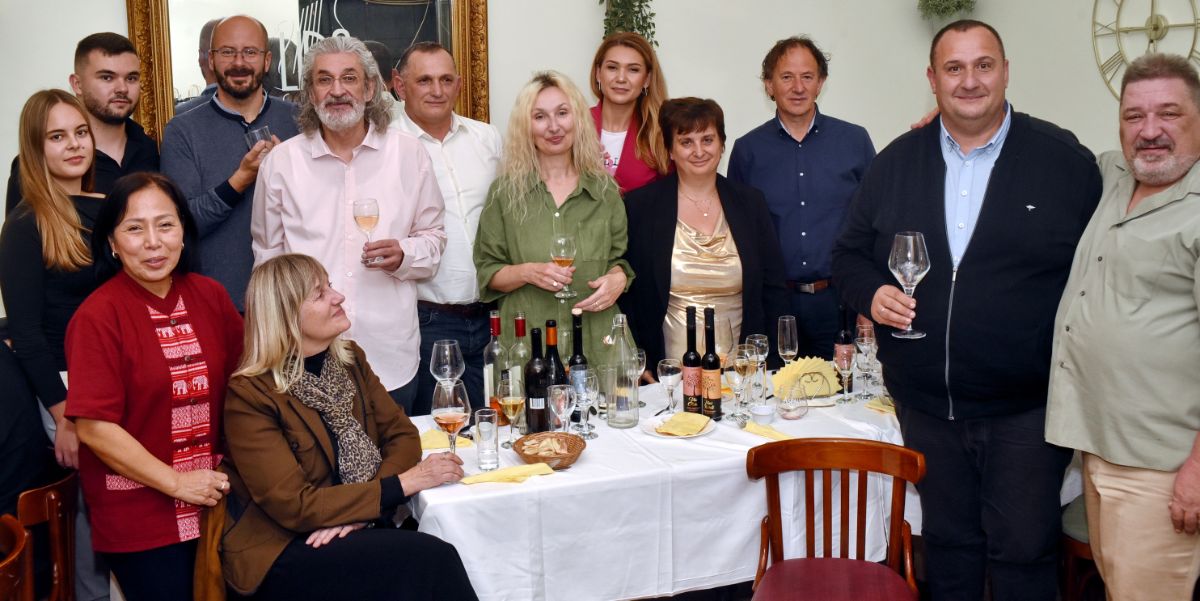 Maja Jakobović, predstavnica obiteljske vinarije B. Jakobović iz Vetova u Vinogorju Kutjevo, upoznala nas je s prvim vinom večeri – pjenušcem Rosé brut. Jakobovići se već cijelo stoljeće bave vinom, a suvremenu vinariju je prije dvadesetak godina osnovao Branko Jakobović. U poslu su mu se pridružili sinovi Filip, koji vodi vinariju, Nino kao glavni podrumar i Maja zadužena za marketing. Vinarija trenutno na tržištu ima 13 vina, od kojih sedam sortnih, tri cuvéea te po jedan rose, predikat i pjenušac. Najzastupljenija s više od 60 % je vrhunska Graševina, a ponudu nadopunjuju Rajnski rizling, Pinot sivi, Chardonnay, Muškat žuti, Cuvée Vetovo kao i Pinot crni, Cabernet sauvignon, Cuvée Stari bokter, Rosé i izborna berba bobica Graševine. Iz godine u godinu vinarija ulaže u tehnologiju i kvalitetu proizvoda te njeguje imidž vrhunske vinarije.