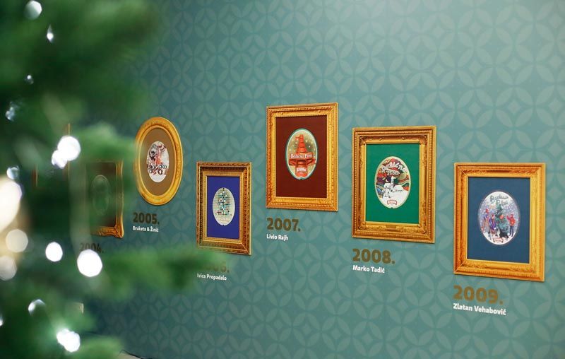 U atriju Galerije Klovićevi dvori, u prigodnom blagdanskom postavu, izložene su etikete Božićnog piva, koje su od samih početaka ove posebne tradicije dizajnirali brojni istaknuti umjetnici. Slavljeničku, 30-tu po redu etiketu dizajnirao je poznati street umjetnik Tomislav Lončarić Lonac.