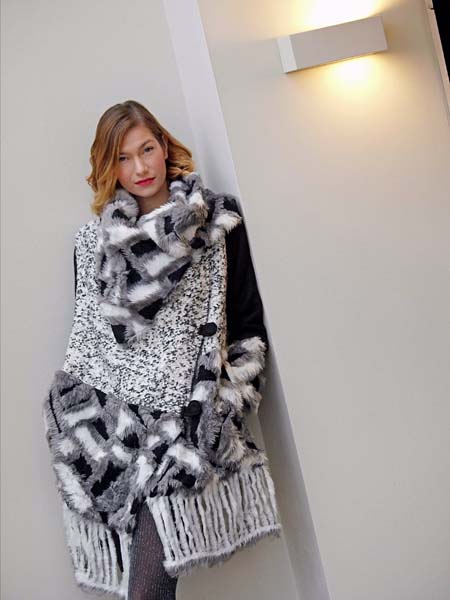 Koji je zapravo stilizirani ogrtač koji je kopča s tri velika gumba odlično prekriva velika prsa, trbuh i bokove. Dolazi u tri različite boje/kombinacije tkanina – od snježno bijelog do zagasitog crvenog. Tkanina- kombinacija vune, viskoze i polyamida.
