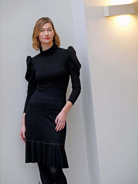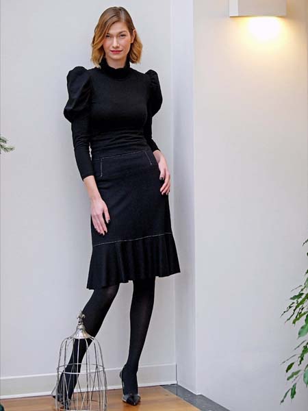 Volite li ovu ne boju u kojoj se najbolje osjećate dok radite, strogo poslovno odijelo zamijenite kombinacijom dolčevite i suknje. Dolčevita napravljena od fine viskoze s pamukom prati liniju tijela a suknja visokog struka definira struk i sužava bokove. Pogledate li bolje, na ovoj suknji su svi vanjski štepovi bijeli što dodatno sužava liniju tijela.