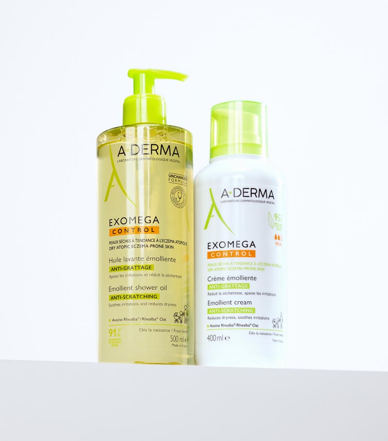 Mnogima omiljena rutina kada je u pitanju njega suhe kože i kože sklone atopiji je A-DERMA EXOMEGA CONTROL ulje za tuširanje i emolijentna krema. Ulje za tuširanje nježno čisti i hrani kožu te već nakon prvog tuširanja pruža 100% umirujuće djelovanje. Riječ je o sindetu, bez sapuna, bogate, ugodne teksture koja se lako ispire. Ulje sadrži Rhealba® zob koja uravnotežuje, umiruje i obnavlja fragilnu kožu. EXOMEGA CONTROL emolijentna krema sadrži tri djelatna sastojka, ekstrakt izdanaka Rhealba® zobi, Filaxerine i vitamin B3, čije je sinergističko djelovanje usmjereno na prekidanje začaranog kruga u kojem se nalaze bolesnici s atopijskim dermatitisom. Ova krema pruža vrhunsku njegu za iritiranu i oslabljenu kožu s crvenilom, zatezanjem ili ljuskanjem.