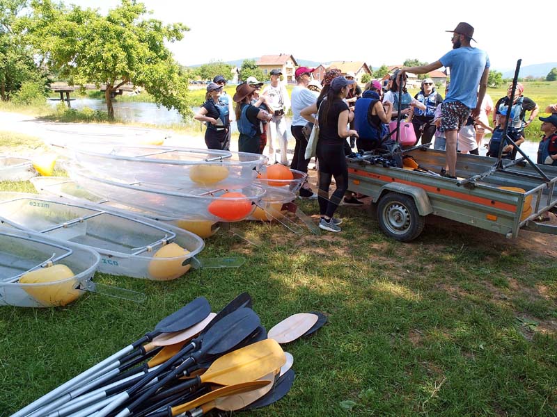Prva stanica na ovom prekrasnom izletu je u okolici sela Čovići/ Lika gdje ćete dobiti sve potrebne naputke kako veslati i uživati u ruti. Isto tako tamo će vam team iz Velebit aktivnosti dati pojas i pomoći vam sjesti u proziran kajak. Kad se u njemu ugodno smjestite (zbog dužine staze i činjenice da sjedite u jednoj pozi najmanje 2,5 sata) nakon prolaska ispod drugog mosta znat ćete čemu služi ugodni jastučić koji ste dobili na samom startu.