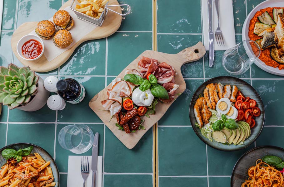 Gastronomska ponuda u Aquaparku Dalmatia prilagođena je svim uzrastima. Za doručak u ponudi su popularna jela poput avokado tosta, jaja Benedikt i klasičnog tosta sa šunkom i sirom, dok su za ručak i večeru posjetiteljima u baru dostupne raznovrsne salate i tjestenine te poseban dječji meni. Za obitelji koje preferiraju nešto drugačije, Superstar corner nudi mesna i riblja jela. Unutar aquaparka nalazi se i trgovina s opremom za plivanje i vodene aktivnosti, higijenskim proizvodima, dječjom kozmetikom, suvenirima i igračkama, a posjetitelji mogu pronaći i razne grickalice te američke slatkiše. U aquaparku je također moguće organizirati proslavu rođendana, koja uključuje cjelodnevno korištenje svih sadržaja.