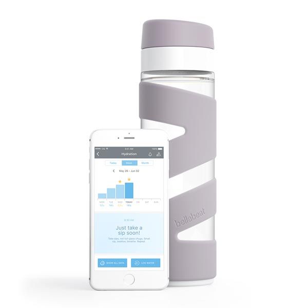 Tu je i nova pametna boca Spring dizajnirana radi uvođenja hidratizacije u način života. Spring bežično bilježi unos vode i pruža prilagođene podsjetnike da redovito i dovoljno pijete na temelju osobnih podataka o životnom stilu korisnice. Povezivanjem s aplikacijom Bellabeat, Spring bežično prenosi dnevni unos samo jednim laganim protresanjem boce za sinkronizaciju podataka. Spring izračunava optimalnu količinu vode koju vaše tijelo treba, na temelju individualnih razina aktivnosti, spavanja, reproduktivnog zdravlja i osjetljivosti na stres. Ovu laganu, elegantnu i pametnu bocu Bellabeatove korisnice nose sa sobom kamo god da idu.
