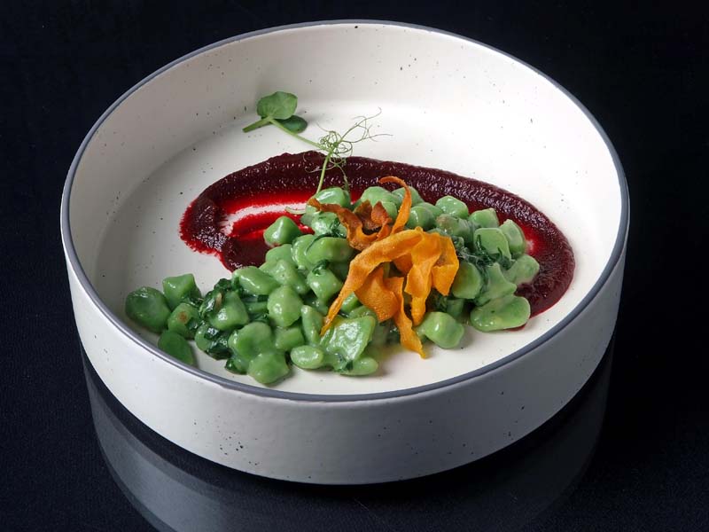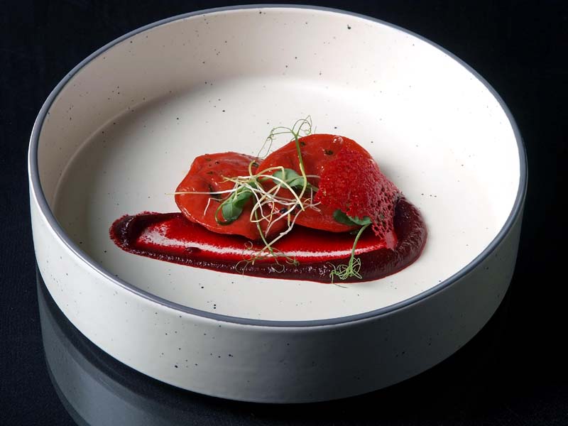 Ravioli od cikle, naravno od domaćeg tijesta punjeni raguom od mlade teletine na pikantnom pireu od cikle bili su drugi slijed. Nježno pahuljasto tijesto koje je obavilo finu, ne previše začinjenu teletinu odlično se slagalo s nježno pikantnim umakom, tako pripremljenim da je gotovo nestao tipičan zemljani okus koji obično prati ciklu. Ispred vegetarijanaca u našem društvu našli su se njoki od koprive i rikule u umaku od šampinjona i izazvali ogromnu znatiželju. Savršeni na oko, a potom poput oblačića u ustima, nježni tako brižljivo pripremljeni da su sačuvali sve okuse ljekovitih biljaka koje su se, na svu sreću, sve više počele koristiti u kuhinjama, pa eto i u visokim, jer su chefica Danijela Vitez i njen tim odlučili u restoranu nuditi domaće, autohtono, ali s pomakom prema modernom.