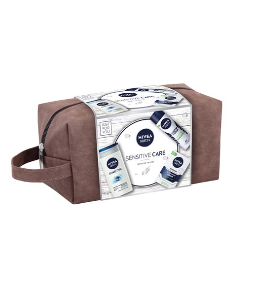 Savršen poklon za muškarce s posebno osjetljivom kožom bit će NIVEA MEN Sensitive Care poklon paket. U atraktivnoj i praktičnoj kozmetičkoj torbici nalaze se: NIVEA MEN Sensitive Protect dezodorans u spreju, NIVEA MEN balzam za njegu nakon brijanja i NIVEA MEN Sensitive gel za tuširanje s ekstraktom bambusa.