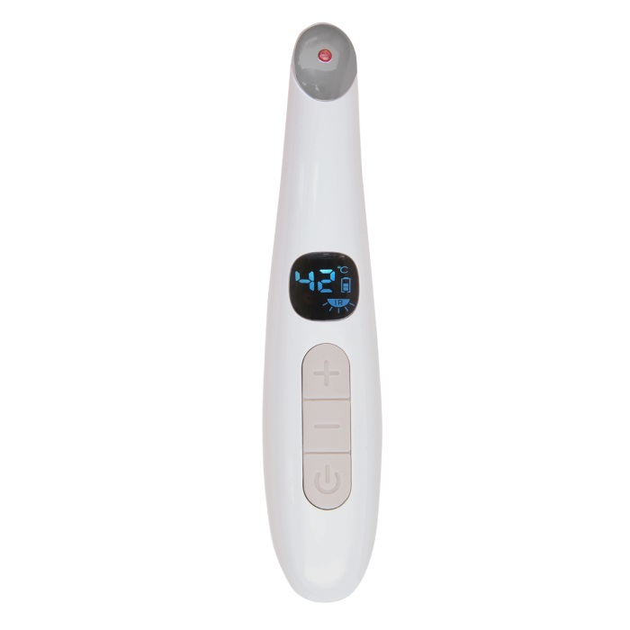 Nanesite malu količinu kreme ili seruma za oči, veličine graška, na područje ispod očiju. Zatim lagano kliznite grijanom glavom štapića od unutarnjeg kuta oka prema vanjskom, radeći masažu oko 15 sekundi po oku. Nemojte koristiti uređaj duže od 60 sekundi na istom području kako biste spriječili iritaciju.