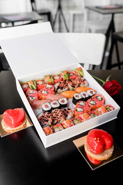 Ljubitelji japanske kuhinje dolaskom u Palmotićevu 2 skrenut će ulijevo jer ih tamo čeka fenomenalan sushi. SoHo je također pripremio poseban meni: sushi ‘love box’ s čak 40 raznovrsnih i slasnih rolica, rose vino i desert. Kao i u Good Food meniju, crvena boja dominira i u Soho-u: ružičasto pobojana riža, ružičasta nijansa rose vina i desert u obliku crvenog srca podsjetnik su kako slavimo ljubav.