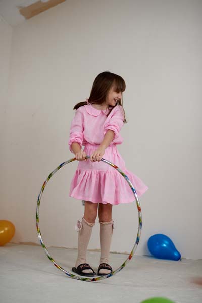 Novom kolekcijom dominiraju pastelne boje koje predvode ružičasta i boja mente, a lan je materijal koji vodi glavnu riječ u cijeloj priči. Nježan, ugodan na koži i savršen za ljetne dane, odlično se uklopio u ovu kolekciju haljinica, suknji i uniseks hlača i majica koje mogu nositi i dječaci i djevojčice. Uz njega tu je i za klince nezaobilazna pamučna felpa, a još je jedna sjajna novost u ovoj kolekciji ta da je dizajnerica radila s deadstock tkaninama odnosno viškom tkanina iz tvornica. Tako je kolekcija podignuta na sasvim novu razinu održivosti.