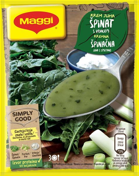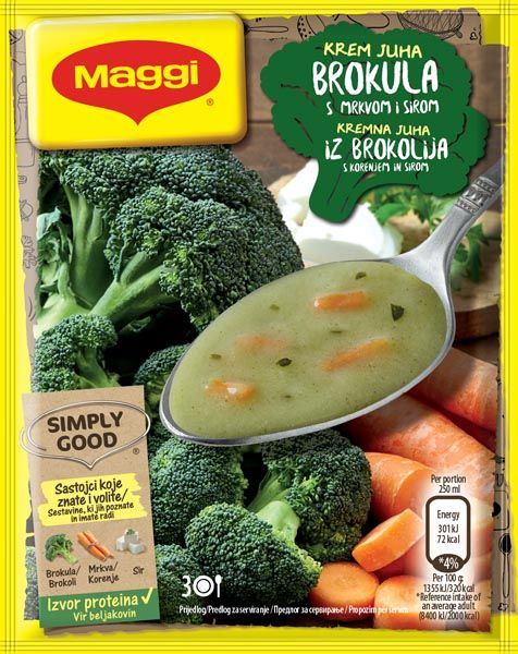 Nove juhe su dio renoviranog asortimana MAGGI s oznakom Jednostavno dobro, pod kojom se nalaze proizvodi koji sadrže jednostavne i potrošačima dobro poznate sastojke poput špinata, poriluka, brokule, mrkve, vrhnja za kuhanje i sira.