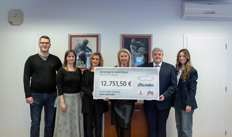 U petak 12. siječnja, dm je Institutu Ruđer Bošković predao donaciju od 12.751,50 eura koja je namijenjena istraživanju raka prostate Laboratorija za nasljedni rak Zavoda za molekularnu medicinu IRB-a. Dosad najveća donacija, kao i proteklih godina, ostvarena je u suradnji sa Satiričkim kazalištem Kerempuh u sklopu kampanje Movember koja je osmu godinu skrenula pozornost na muške bolesti i važnost njihove prevencije.