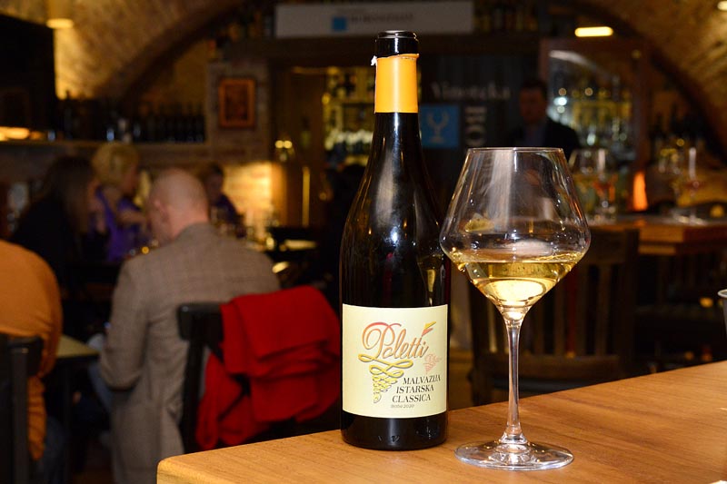 Nakon svježe, pila se izvrsna Polettijeva malvazija Classica (2020.) koja je provela vrijeme u drvu; točnije 30% u velikim bačvama od akacije, a 70% u hrastovim bačvama, na talogu, a onda u inoksu i boci. Niski prinosi po trsu i škrta crvena zemlja čine ovo vino vrlo moćnim bijelim vinom, sposobnim popratiti najrazličitija jela. Kompleksnu i moćnu, a ipak kremastu i nježnu Classicu krasi zlatnožuta boja, uz fin, izražen i kompleksan miris u kojem se ističu arome vanilije, maslaca, sušenih marelica i žutoga cvijeća, uz diskretan utjecaj drva. U ustima ovo je vino zaokruženo, bogato, toplo i slasno.