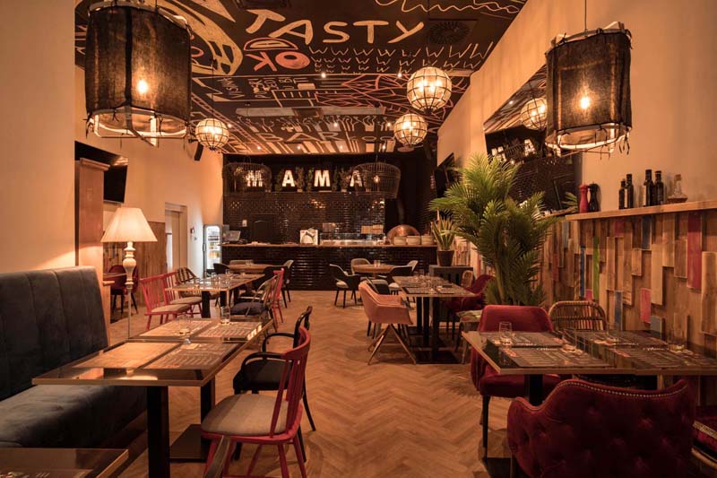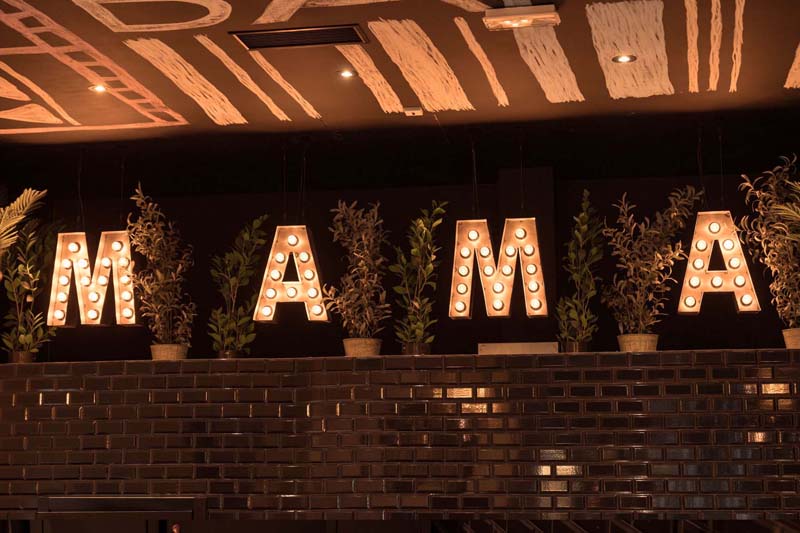 Na 200 m2 restoranskog dijela i barskog dijela može se smjestiti stotinjak gostiju, dok je terasa također podijeljena u dva dijela. Vedre boje koje prevladavaju odmah popravljaju raspoloženje svakom posjetitelju. Samim prostorom dominiraju drvo, metal i razne tkanine na stolicama i klupama. Svaki je detalj pomno biran i priča neku svoju priču. Razni lusteri koji dominiraju dijelom prostora, svaki na svoj način odaju poseban dojam i raznolikost. Dominantna slova MAMA u restoranu, prostoru daju toplinu i skreću pogled na prostor pripreme jela kojim dominira posebna peć iz koje izlazi hrskava pizza Romana i okusi koji nećemo lako zaboraviti.