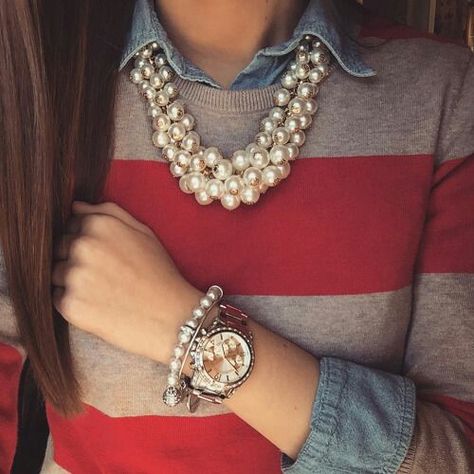 Kad ste uskladili idealnu boju naučite kako ogrlicu kombinirati s odjećom koju nosite. Volite li jednostavne košulje, čak i klasiku – traper košulju, odaberite nekoliko nizova bisera i objesite je tako da popunjava gornji dio dekoltea. Tako ćete običnom odjevnom predmetu dati lijepi detalj, korigirajući siluetu.