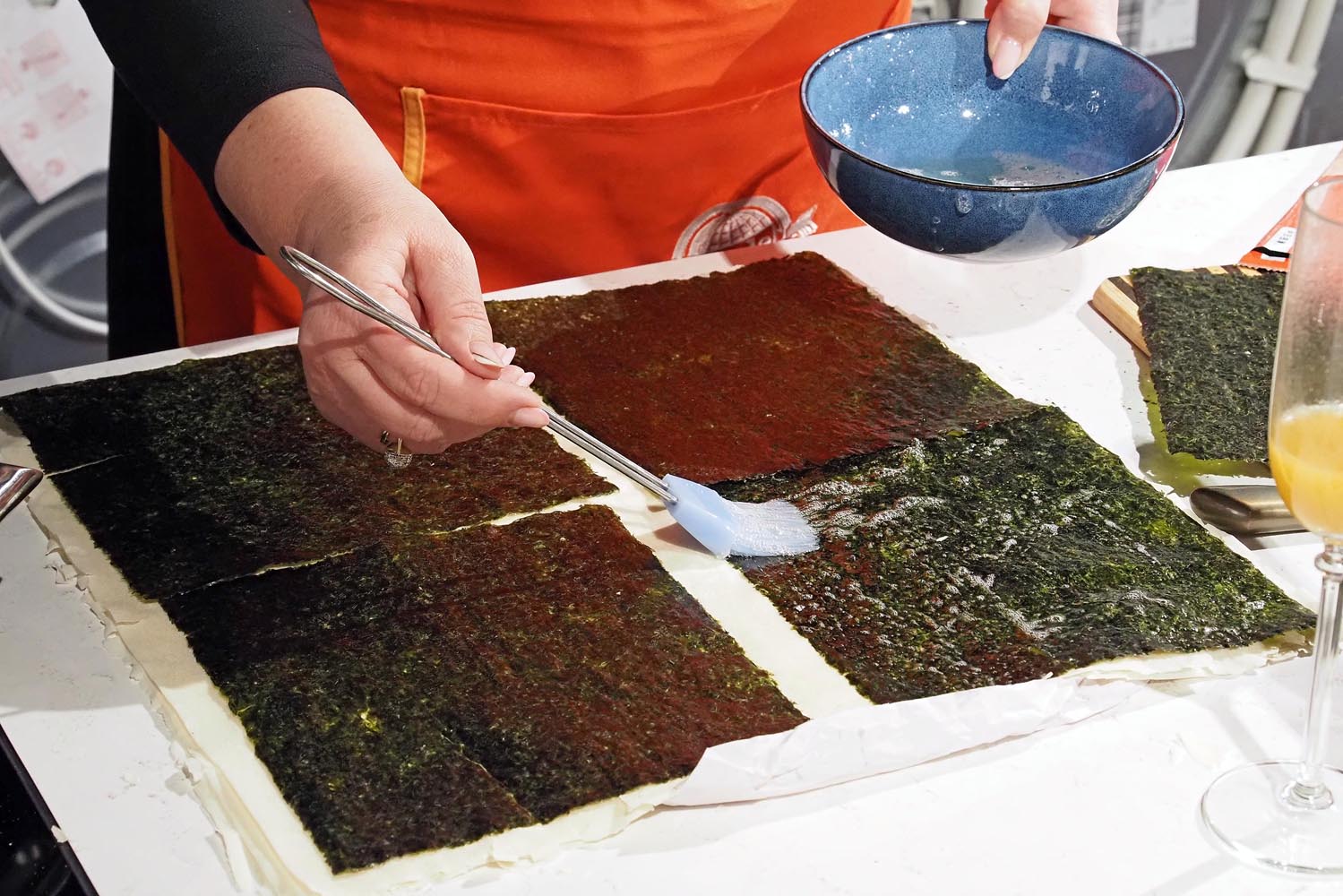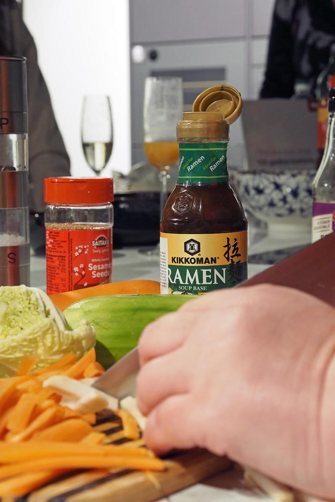 Dakle, naziv radionice označavao je otkrivanje načina kako napraviti Ramen kod kuće, posebno kad nemate dovoljno vremena za kuhanje. budući da Mily sve što kuha pojednostavljuje čineći recepte laganim čak i kuharicama koje tek počinju, vesela gastro blogerica pokazala je svoju tajnu. Svakome je dala povrće i pokazala način kako ga oguliti i izrezati, a zatim pokazala svoje male tajne za pripremu ove juhe. Naime, za pripremu Ramen juhe koristila je Kikkoman bazu za ramen dodajući povrće i kineske rezance. Dok se juha kuhala, Mily je svima pokazala kako napraviti zdravo i hrskavo predjelo. Tog je dana kupila na tržnici kore za savijaču na koje je ‘zalijepila’ ružinim brašnom ili bjelanjkom Nori alge. Izrezane kvadratiće stavila je u vrelo ulje i za nekoliko minuta poslužila odlično predjelo. Jastučići su bili ukusni i samostalno, ali naravno točku na ‘i’ su dala dva Kikkoman umaka koje je poslužila uz hrskavce.
