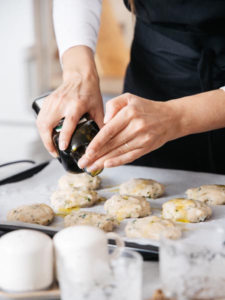 Pecite u pećnici na 200 stupnjeva s ventilacijom oko 15-20 min ili na tavi.