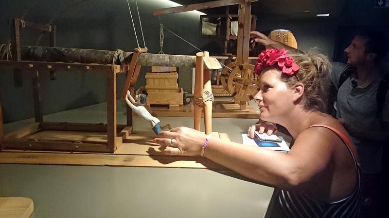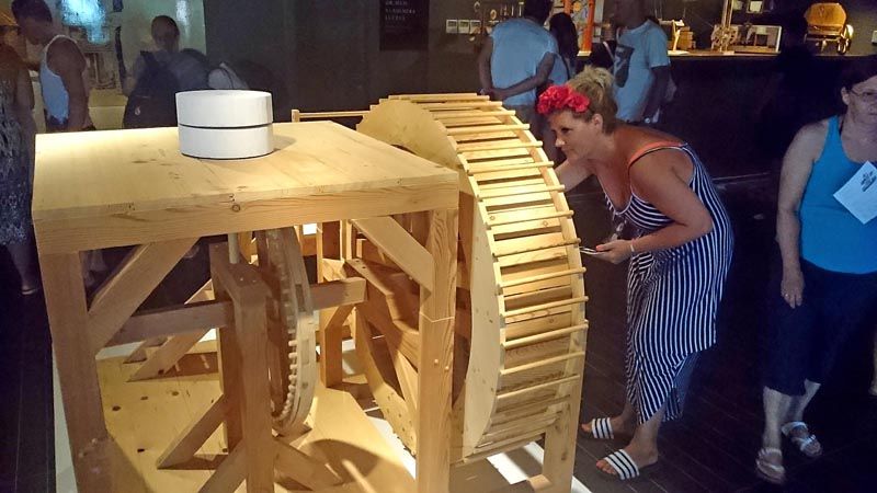 Ukrcali smo se poput pravih turista u Pirovcu – na brod koji nas je poveo na ovo tematsko putovanje. Odlična organizacija ovog putovanja (izlet je ponovno 14.08., raspitati se možete u Turističkoj zajednici općine Pirovac) u trenu vas pretvara u pravog zaljubljenika u povijest ali i prirodu kraj koje prolazite. Na ovom putovanju ćete vidjeti cijeli Murter, mahnuti ekipi u Vodicama i usidriti se u luci otoka kojeg karakteriziraju uske kamene ulice, ali i Memorijalni centar Fausta Vrančića. Na ulazu u centar pozdravlja vas Ivana Skočić, ravnateljica ovog centra – žena koja u ‘malom prstu’ ima povijest obitelji Vrančić! Dođete li s grupom, Ivana priča 20-minutnu priču o Faustu koja je odlična podloga za razgled centra. Kroz čija je vrata samo dovoljno proći i tada nastaje čarolija… Centar je interaktivan pa za samo nekoliko minuta i najstariji postaju djeca! Na ovom mjestu možete vrtjeti mlinove, igrati igrice, vidjeti Faustove izume kako prenositi teške terete, prošetati mostom… Nakon muzeja, za posjetitelje su otvorena vrata crkve Sv. Marije od Milosti u kojoj se nalazi grob ovog jezikoslovca, pronalazača, diplomata, inženjera, svećenika i biskupa.