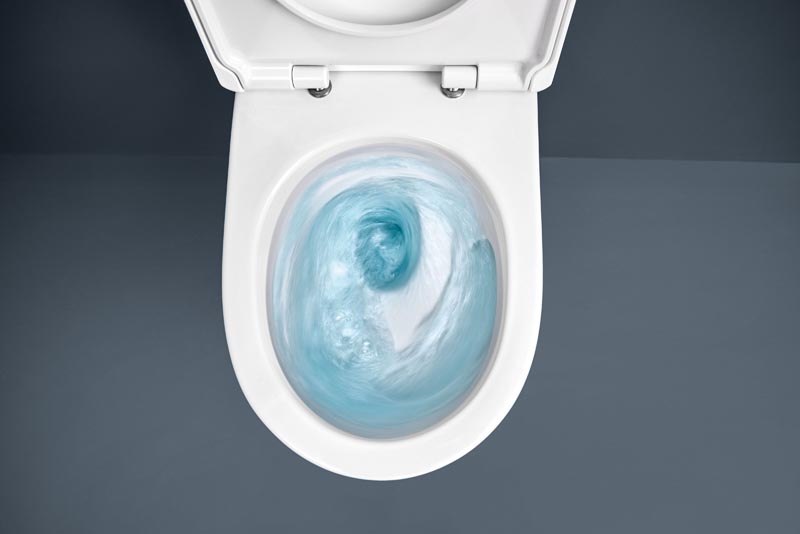 Potrebno je više od same vode da bi ispiranje WC školjke bilo temeljito. Najvažnija je sila kojom se voda dovodi iz vodokotlića u WC školjku i preciznost kojom se voda usmjerava kroz keramiku WC školjke tako da se cijela unutarnja keramika ispire potpuno i temeljito.