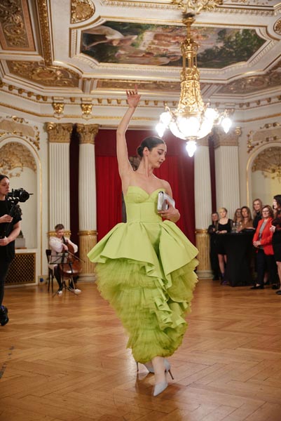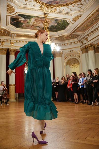 U predivnom prostoru foyera kazališta dogodio se savršen spoj umjetnosti glazbe i plesa s umjetnošću modnog dizajna. Reviju su graciozno i nadahnuto otplesale istaknute balerine HNK – Leda Šeparović, Rieka Suzuki, Lucija Radić i Cristiana Rotolo. Sjajnu glazbenu pratnju priredila je violončelistica Petra Kušan, za stajling se pobrinula naša poznata kostimografkinja i stilistica Barbara Repe, a goste je u čaroliju glazbe, plesa i mode pričom uvela muzikologinja i televizijska urednica Jana Haluza.