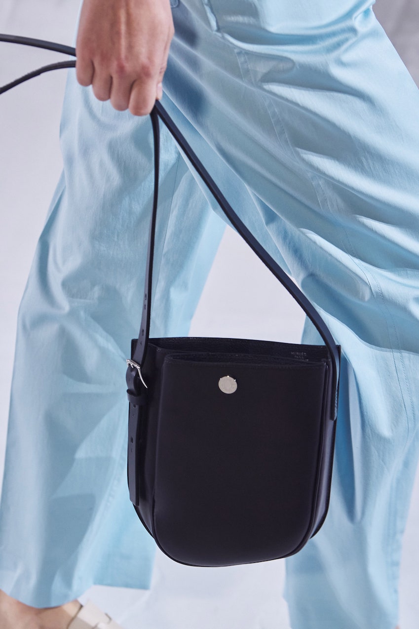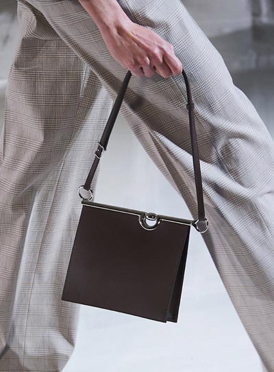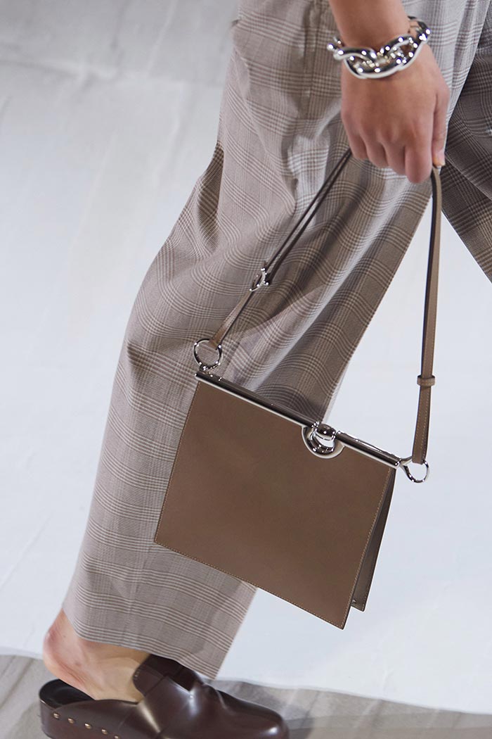 Za razliku od Perspective Cavalière, Mors de Brides strogo je strukturiran sa zatvorenim vrhom. Njegova traka nadahnuta čuvenim Hermès kožnim remenima, istaknutim metalnim metalnim hardverskim značajkama srebrnog tona na gornjem zatvaraču.
