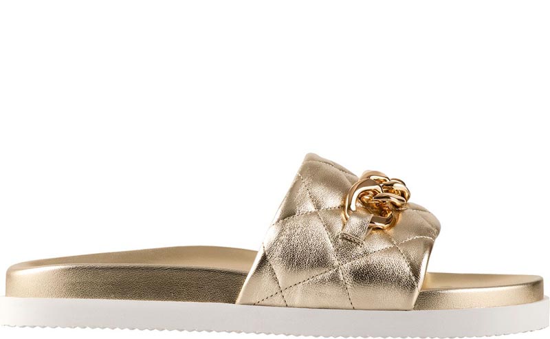 Ugodnost je na vrhuncu jer je potplat anatomski oblikovan, a širina gornjeg dijela je tako dizajnirana da ne dodiruje platfus. Ove kožne natikače ukrašene su zlatnim lancem, pa se lako kombiniraju uz sve ljetne outfite, a dolaze u nekoliko boja (crna,bijela, ciklama i neodoljive zlatne).