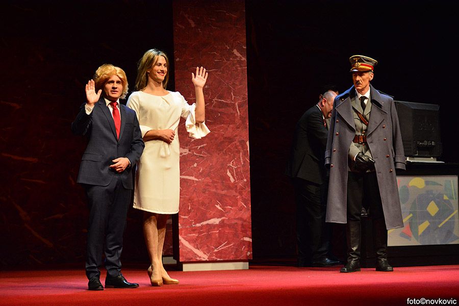 Satirična predstava Opet on, nastala prema bestselleru njemačkog autora Timura Vermesa, puni zagrebačko Kazalište Komedija. Autorski tim predvođen je redateljem Markom Juragom i dramaturginjom Jelenom Veljačom, a glavna zvijezda je Dražen Čuček koji na krilima velikog glumačkog ansambla Komedije maestralno interpretira ulogu najvećeg zločinca u svjetskoj povijesti.
