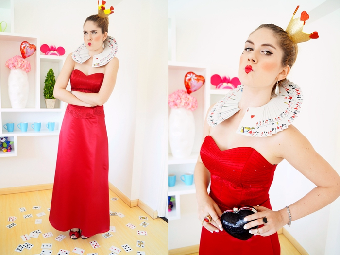 Ovo je vrlo jednostavan, a efektan kostim. Kraljica Srca iz priče Alisa u zemlji čuda treba jednostavnu crvenu haljinu (onu koju ste samo jednom odjenuli kad ste išli na vjenčanje prijatelja) potpetice i ukrase od karata umjesto ogrlice. Točki na ‘I’stavite make up-om.