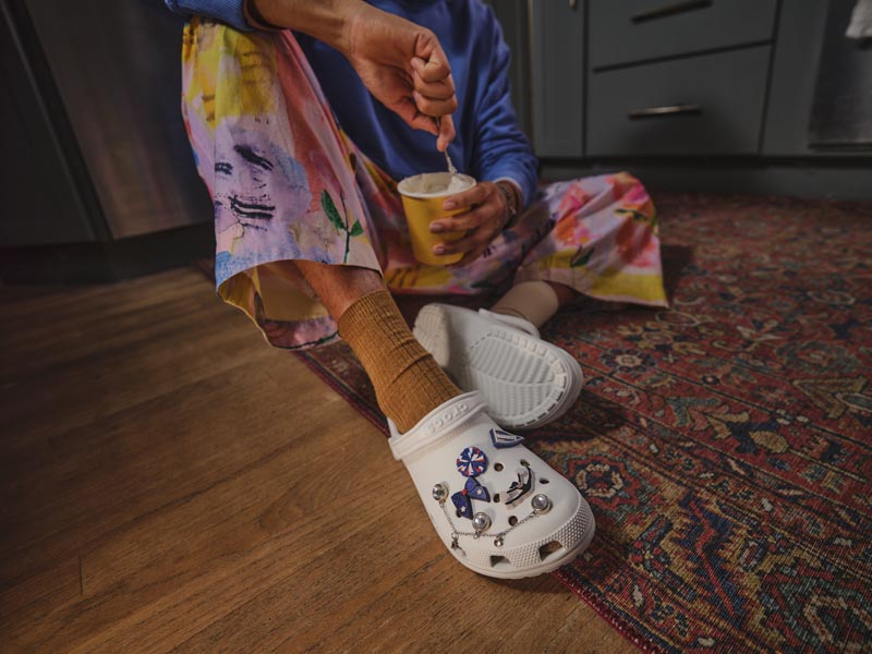 Želite li besprijekornu stilizaciju naoko jednostavnog para obuće držite se pravila da na svoje Crocsice stavite neparan broj ukrasa. Na obje strane tako ispričajte priču koja naglašava vašu osobnost privlačeći poglede. Već nekoliko modnih sezona Crocsice u stopu prate statement komade i izlaze na posebna mjesta. U tom slučaju odaberite Jibbitz detalje poput metalik detalja, bisera, perli. Kako bi dojam bio savršen uz takve Crocsice kombinirajte i trendy soknice.
