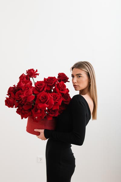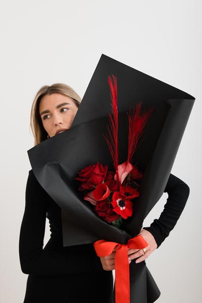 Ništa tako dobro ne simbolizira intenzitet snažnih emocija ljubavi i strasti kao neizostavne crvene ruže, ali i drugo cvijeće u nijansama crvene boje. U novoj kolekciji posebno birano cvijeće kombinira se s ekstravagantnim crvenim perjem i crvenom mašnom te ukrasnim papirom crne ili prirodne, natur boje što vam ostavlja mogućnost da birate buket savršen baš za vašu voljenu osobu.