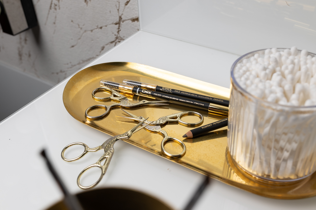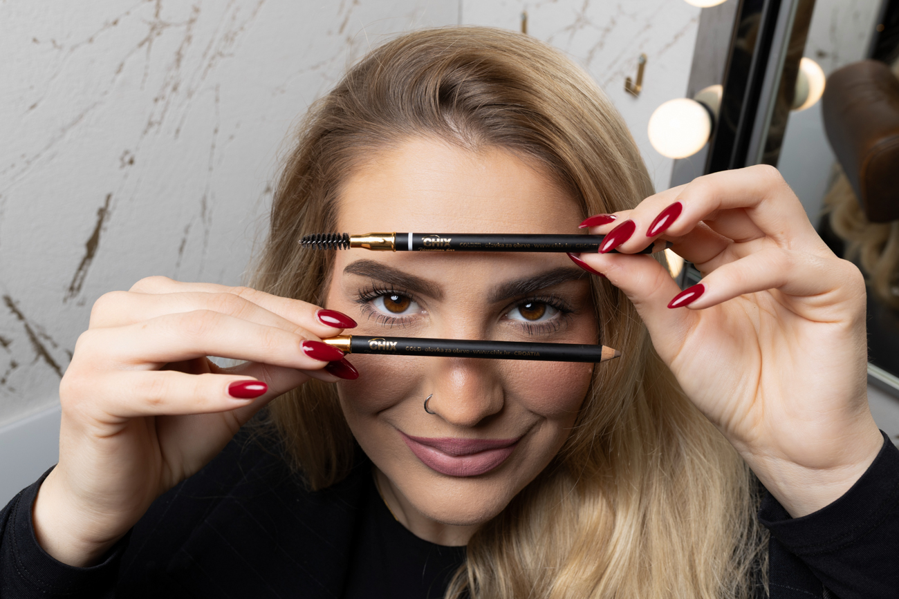 Pa krenimo s time zašto se olovka nanosi te što ona daje našem izgledu. „Olovka služi preciznoj korekciji nepravilnosti simetrije obrva te popunjavanju praznina. Ta glavna dva faktora su najčešći razlozi zašto nečije obrve imaju wow efekt. Osim urednih obrva lišenih viška dlačica, touch olovkom je šlag na torti. Prvi korak je rad na prvom faktoru (simetrija): našiljenom olovkom povlačite cijelom donjom linijom obrve od početka do kraja repa. Zatim gornju vanjsku liniju povlačite od luka do kraja repa. Iza toga radimo na drugom faktoru (gustoća): Rep se popunjava gusto, a početak obrve i ostatak nešto blažim pritiskom. Nakon toga radite isto na drugoj obrvi pazeći na simetriju s prvom. Kada ste uskladili simetriju, okrenete olovku te češljićem ublažavate jačinu boje do željene. Pri tom počeci uz nos uvijek trebaju biti svjetliji od repa“, otkriva nam Vedrana Tomić, vlasnica brenda CHIX threading barova koji imaju i svoje dvije olovke koje su napravili kako bi si olakšali posao, no osim profesionalne upotrebe daju mogućnost i klijenticama da ih nabave za vlastitu uporabu.