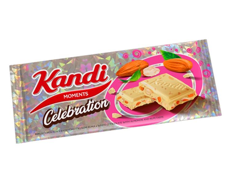 Neobične kombinacije najfinije bijele ili mliječne čokolade s različitim aromama u Kandi Celebration, Party time i Sweet dreams čokoladama slatkiši su koji će obilježiti kraj ove godine. Dolaze iz Kandit obitelji, a predstavljaju idealan poklon ali i savršenu čokoladu za trenutke opuštanja.