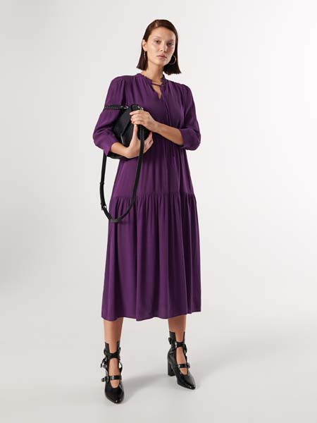 Budući da je ljubičasta proglašena kraljevskom bojom, kraljevski se i kombinira – nosi se monokromatski u outfitu u kojem naglasak stavljaju svijetlije ili tamnije nijanse ljubičaste ili u printevima u kojem je ljubičasta jedina hladna boja koju pojačavaju tople (kao ovaj primjer printa).