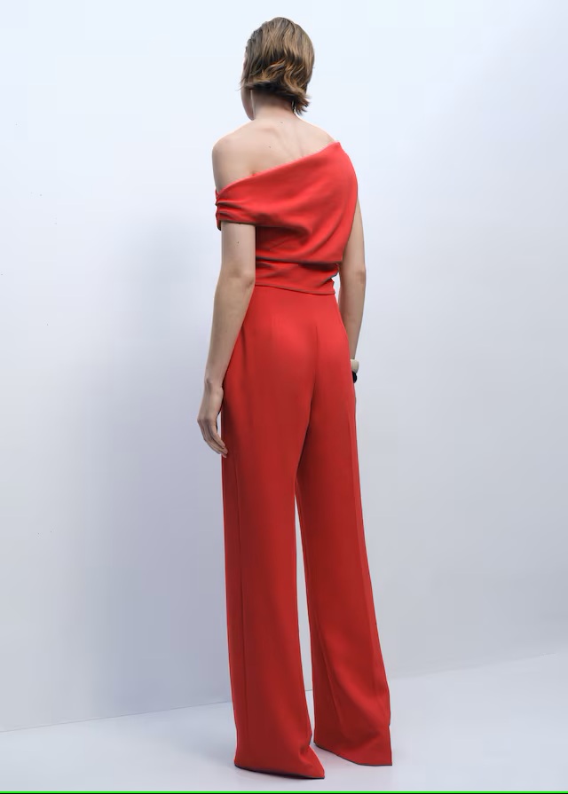 U aktualnoj kolekciji Manga pronašli smo kombinezon u jarkoj crvenoj boji koji spaja hlače visokog struka i asimetričnu bluzu. Ovaj kroj savršeno se prilagođava svim tipovima tijela, bilo da ste žena s oblinama ili vitka i visoka. Kombinezon naglašava siluetu, pružajući elegantan i sofisticiran izgled.