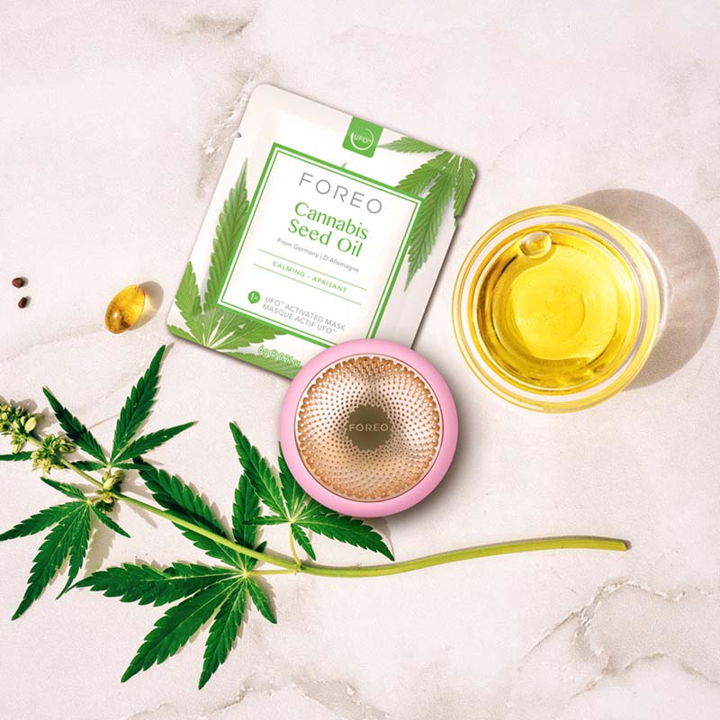 Iako je upotreba konoplje nekoć bila zabranjena, danas se ekstrakti konoplje bez opojnih učinaka smatraju važnim dijelom beauty industrije, unatoč ”kontroverzama“. Za razliku od nekih drugih sastojaka, ekstrakti konoplje pomažu da se dobro osjećate i odlično izgledate. Također hidratiziraju i hrane kožu – te su zapravo rijedak sastojak koji usklađuje unutarnju i vanjsku ravnotežu. Imajući to na umu, švedski skintech brand FOREO kreirao je Cannabis Seed Oil masku s formulom kojom istovremeno umirujete kožu i um, obogaćenu uljem sjemenki konoplje, kamilice i magnezijevog askorbil fosfata koja, uparena s novim UFO 2 uređajem, pruža opuštajući tretman lica koji čini kožu lica manje crvenom i više zen-smirenom.