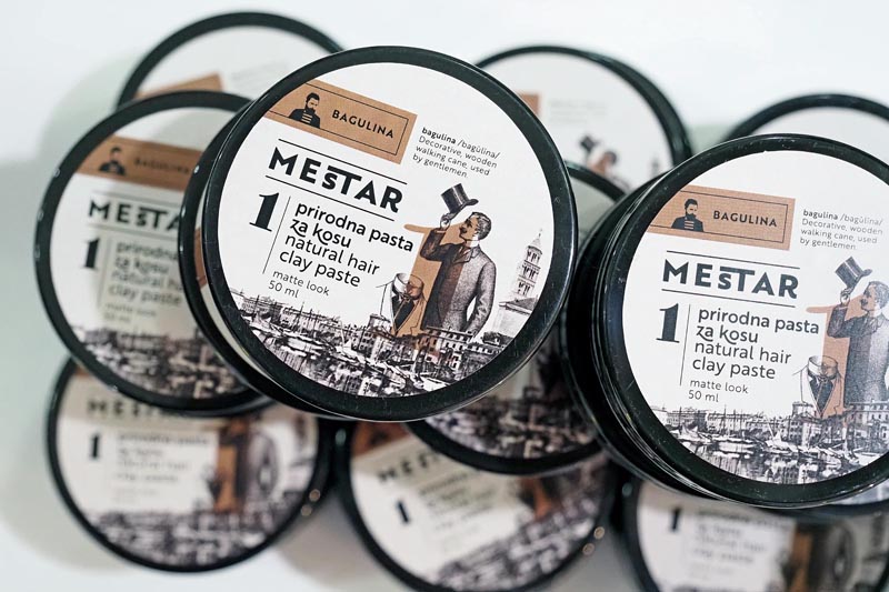 Dok su nam pričali svoju priču, prvi fokus je bio usmjeren na Meštra koji je tvrtku Meštar prirodna kozmetika pretvorio u vrlo konkurentsko i popularno ime u svijetu muške kozmetike. Posebna je pažnja usmjerena prema njezi osjetljive muške kože koja nakon brijanja postaje dodatno dehidrirana, a svi sastojci koji se nalaze u kremama, losionima, uljima, sapunima su prirodni, a u kombinacijama opisuju dalmatinsko podneblje što evocira poseban osjećaj. Dizajn je odličan, jednostavno mami na kupovinu (čak i ako ne poznajete ni jednog bradonju) i poticanje jačeg spola da njegu lica i tijela uzmu u svoje ruke. U mnoštvu proizvoda ove linije provlače se i tipični dalmatinski nazivi koji su poslužili kao inspiracija za pojedine proizvode. Tako dobro znan Picigin pojavljuje se kroz sliku galebova koji se igraju na plaži, zbog čega je miris svjež i razigran, s gornjom notom slatke naranče. Balatura podsjeća na bilje koje raste u pitaru ispred kuće, dok Bagulinu, ozbiljnog ali nježnog drvenastog mirisa po cedru i borovici, nosi onaj fini gospodin koji drži do sebe. Meštar na svojoj ambalaži ima i brojeve (od 1-5) koji karakteriziraju proizvode- od kose do njege tijela. Koji je proizvod najpopularniji? Losioni nakon brijanja i odličnu ulje za bradu!