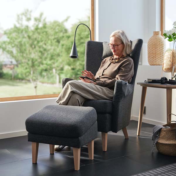 Upravo je IKEA kolekcija OMTÄNKSAM razvijena u suradnji sa stručnjacima za ergonomiju te fizioterapeutima i istraživačima iz industrije njege. Na primjer, na OMTÄNKSAM stolici lako je sjediti i s nje ustati jer visoki i široki nasloni omogućavaju da poduprete ruke. Za još udobnije sjedenje, stolici dodajte jastuk iz iste kolekcije, ispunjen mekanom pjenom koja se prilagođava obliku tijela. Stol iz ove kolekcije lako bi mogao proći i kao radni – otporan je na ogrebotine pa ne morate brinuti o njegovoj površini.