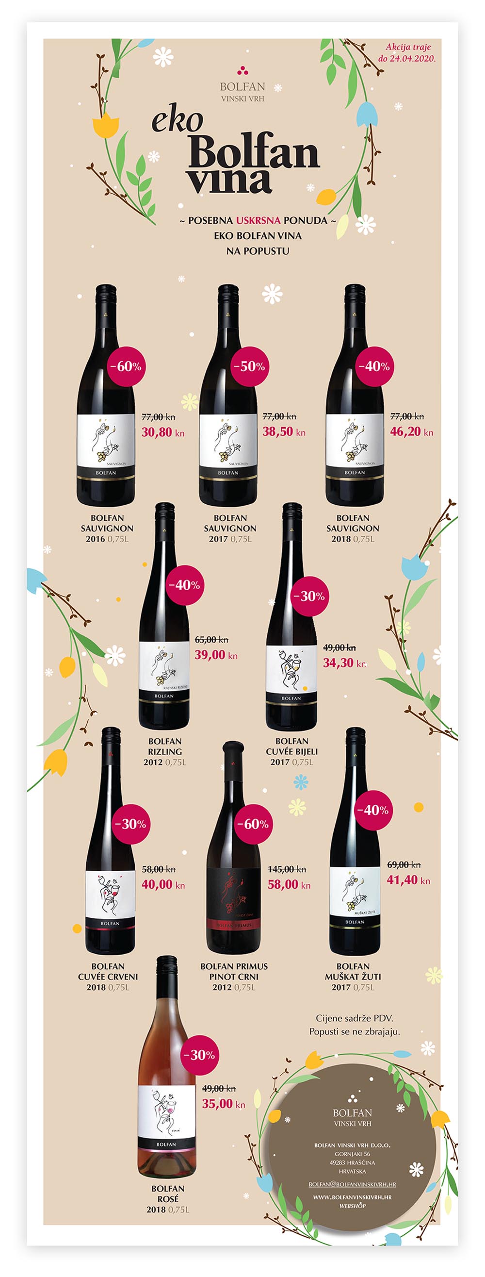 Cijene sadrže PDV i vrijede do 24.04.2020. Posebna Uskrsna ponuda ne može se kombinirati sa drugim popustima, akcijama!