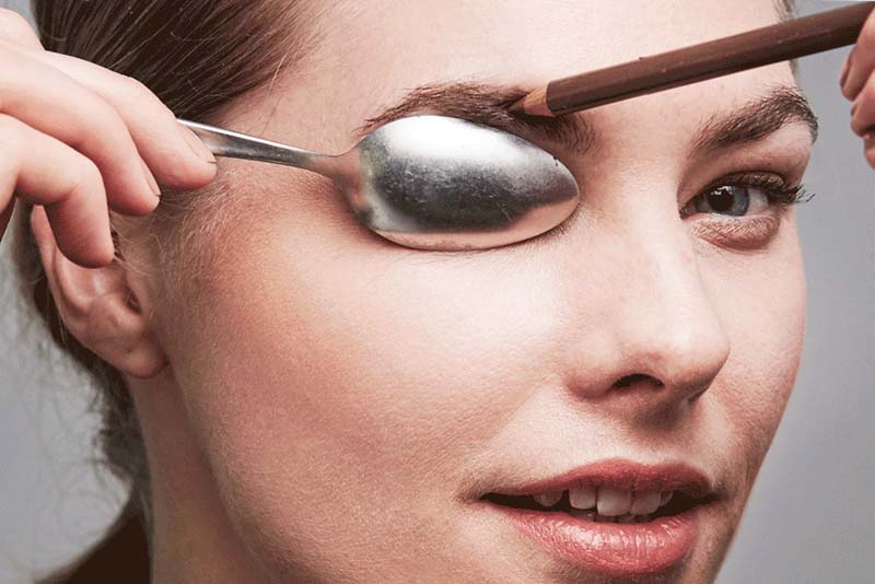 Obrve su jako važan detalj na licu (posebno sad kad nosimo maskice) pa pazite kako ćete ih bogato iscrtati. Kako biste ih punile kako treba prekrijte oko žlicom (može hladnom kako biste smanjili otok ispod očiju) i krenite s iscrtavanjem.