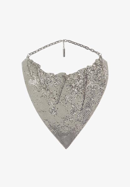 Marame od perli prekrivaju dekolte tankim slojem svjetlucanja, idealne za kvadratna lica koja žele omekšati linije. Raznobojne perle stvaraju valoviti efekt koji pada preko ramena, slažući se s tamnim haljinama za kontrast. Principi: duljina do struka za pokrivenost, veće perle za volumen, kombinacija tonova za dubinu.