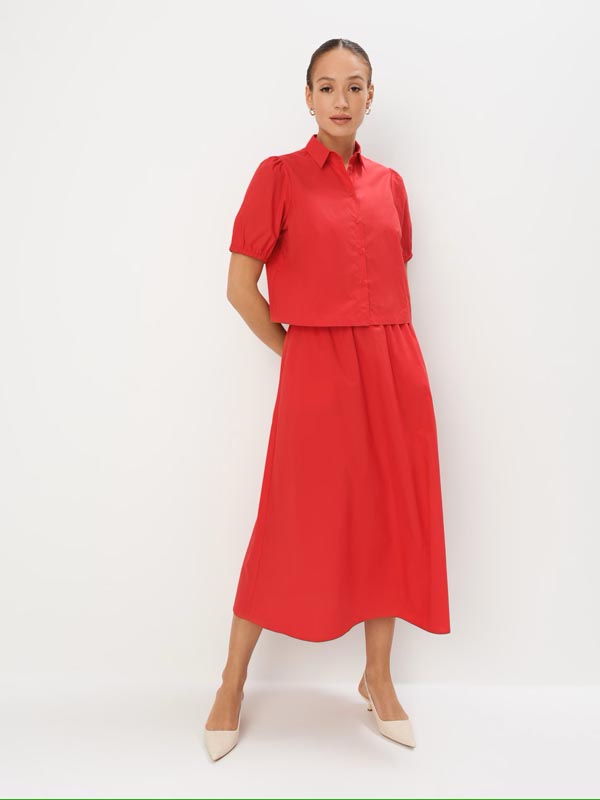 Vjerojatno ste primijetile – crvena u svoj svojoj dominaciji vladat će ovog proljeća. Ovom su bojom obojeni temeljni odjevni predmeti poput haljina, suknji, ali i nositelji stila poput koketnog prsluka koji se kameleonski uklapa u sve modne kombinacije. Za razliku od crvene koja je karakteristična za prosinac i blagdansko vrijeme ova proljetna je nešto mirnija i sličnija nijansi trešanja, jagoda, ribizla.