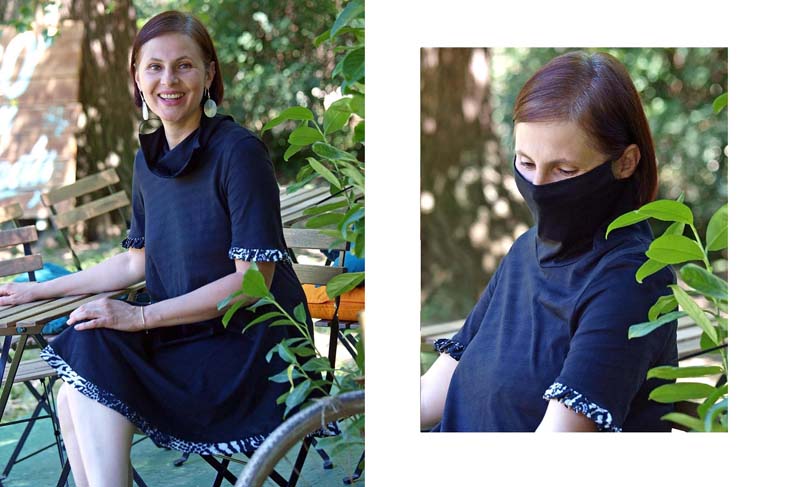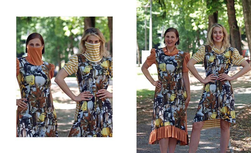 - „Nemogućnost ulaska na određeno mjesto, ali i briga oko toga imate li masku ili ne (da ne govorimo o nošenju maski po torbama i džepovima) potaknula me na razmišljanje o tome, zašto ne ponuditi ovog ljeta modele lijepih haljina i tunika koje imaju stiliziranu masku. Tako je na vama da samo odjenete odjevni predmet koji savršeno laska vašoj figuri i po potrebi navučete masku preko nosa i usta“ – kaže ALma predstavljajući neke najprodavanije modela ‘korona haljina i tunika’.