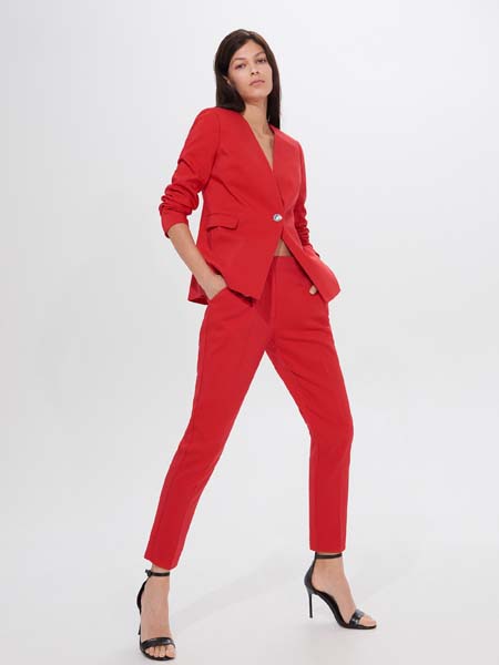 • Crvena je boja strasti i ljubavi pa s odijelima u ovoj boji treba biti oprezan. Crveno odijelo odjenite bavite li se kreativnim zanimanjima (PR, moda, ljepota) i ublažite ga modnim detaljima kombiniranim po principu color blocking ili kontrast u ne bojama (crne ili bijele cipele/remen/torba).