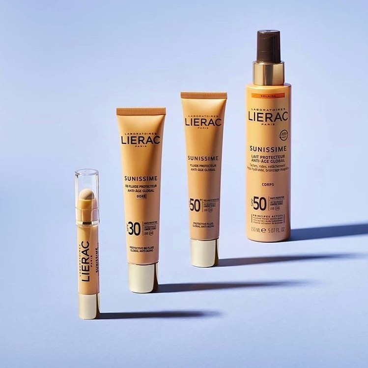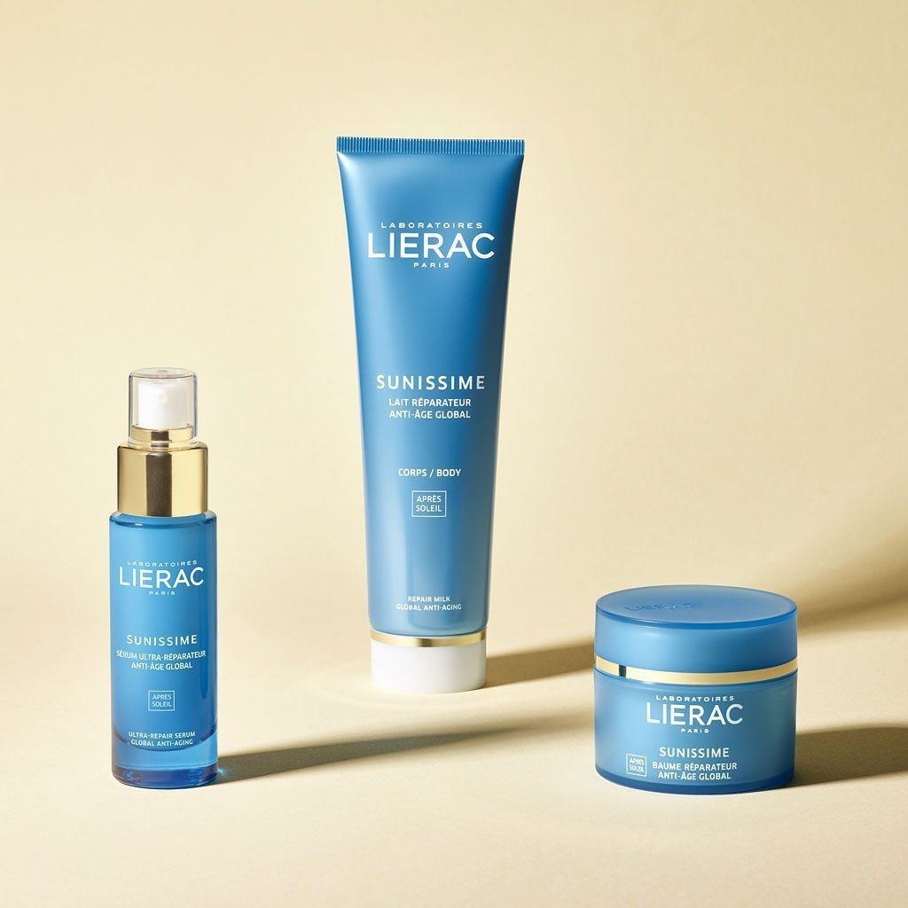 Lierac Sunissime linija za njegu kože prije i nakon izlaganja suncu sastoji se od mlijeka za tijelo sa zaštitnim faktorom SPF 15, SPF 30 i SPF 50; anti-age fluida za lice sa zaštitnim faktorom SPF 30 i SPF 50; toniranog fluida za lice sa zaštitnim faktorom SPF 30 i SPF 50; sticka za područje oko očiju sa zaštitnim faktorom SPF 50, mlijeka za tijelo nakon sunčanja te seruma i balzama za lice nakon sunčanja. Stick za područje oko očiju energetska je injekcija za kožu jer, osim što štiti od sunca, čuva je od foto-starenja, a ujedno je i jedini takav proizvod na svijetu.