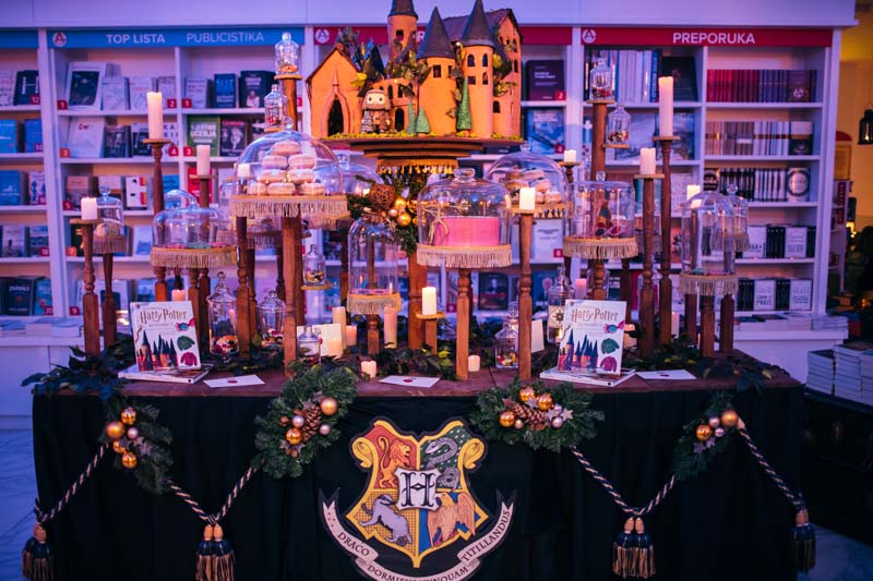 Zavirite u magično carstvo Hogwartsa ulaskom u najljepše uređenu knjižaru u Zagrebu i otputujte u kraljevstvo snova u kojemu ćete uz „Službenu Harry Potter kuharicuˮ pronaći mnogobrojne literarne poslastice – knjigu o Einsteinu Waltera Isaacsona, svjetski popularna djela „Velike ideje – Književnostˮ, „Inovatoriˮ i „Vještine učenjaˮ te druge vrijedne naslove. Za magično uređenje unutrašnjosti i izloga Arkadije dugi je niz godina zadužen Mario Miše, a ove sezone hvaljeni umjetnik s adresom u Londonu bio je posebno inspiriran. Veliki ljubitelj malog čarobnjaka i svih knjiga J. K. Rowling knjižaru je pretvorio u čarobnjačku školu u kojoj nema bezjaka! Tema Potterove kuharice, kako joj i ime kaže, slane su i slatke čarolije, pa njih u ovom magičnom carstvu knjiga ne manjka – od poslastica s potpisom začetnice popularne online kuharice Chiarin tanjurić Nastasje Chiare Petrić do onih koje se čuvaju u obiteljskoj biblioteci. Poput raskošne prosinačke gozbe, knjige su pomno složene kao dekoracija na stolovima i pozivaju da ih pročitate.