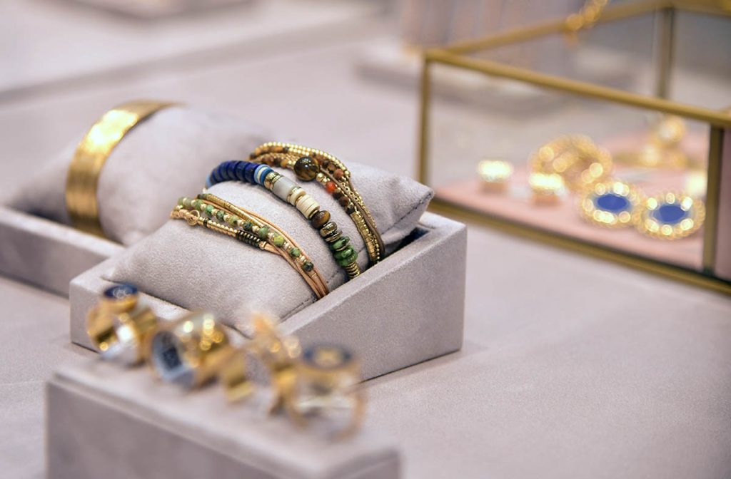 Sav nakit izrađen je od srebra, čelika ili zlata, s ukrašenim kamenjem u boji.