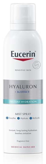 Kad vam je tijekom dana potrebna dodatna hidracija i njega, nanesite Eucerin Hyaluron osvježavajući sprej za lice i tijelo koji je pogodan za svakodnevnu upotrebu za sve tipove kože, uključujući I osjetljivu kožu. Ovaj jedinstveni sprej trenutno otpušta hijaluronsku kiselinu u obliku rashlađujuće i osvježavajuće maglice, a njime možete umiriti i hidrirati kožu bilo kad i bilo gdje. Poboljšava hidracijski sustav kože, ravnomjerno raspoređuje vodu, zadržava vlagu te kožu čini glatkom i blistavom. Bro se upija te je pogodan je za više nanošenja tijekom dana.