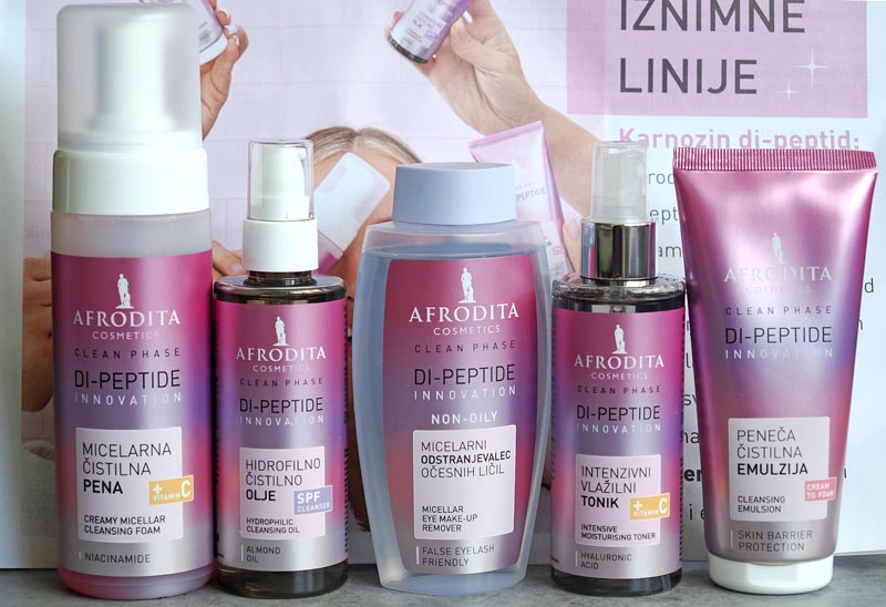 Proizvodi DI-PEPTIDE INNOVATION podržavaju trenutačno najpopularniji beauty trend – metodu dvostrukog čišćenja, koja je dobrodošla navečer i posebno se preporučuje korisnicima šminke, proizvoda koji sadrže SPF filtre te svima onima čija je koža sklona začepljivanju pora. Učinkovitost HIDROFILNOG ULJA ZA ČIŠĆENJE koje otapa ostatke šminke, SPF filtre i ostale nečistoće topive u ulju, izvrsno dopunjuje lagana, pahuljasta MICELARNA PJENA ZA ČIŠĆENJE koja s kože uklanja nečistoće topive u vodi i ostatke čistača na bazi ulja. Kao što ističu u Kozmetici Afrodita, idealan zaključak rituala čišćenja je nanošenje INTENZIVNOG HIDRATANTNOG TONIKA koji izdašno vlaži kožu te poboljšava upijanje ostalih proizvoda za njegu.