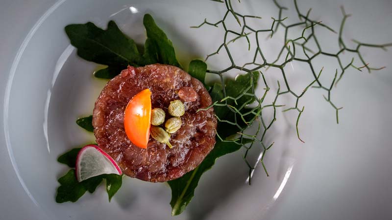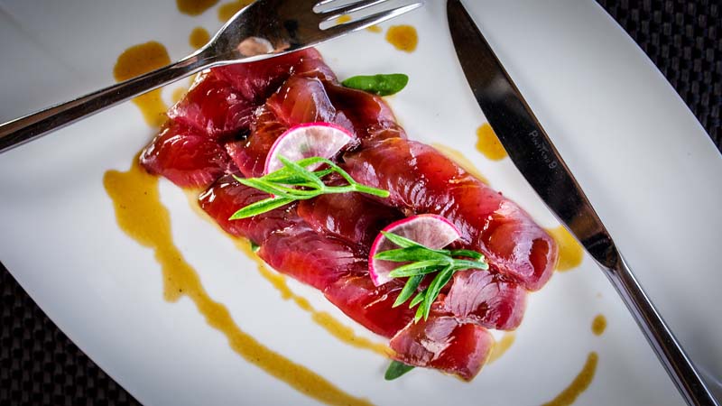 Trlju isfiletirati i otkostiti. Marinirati kratko u limunovom soku 10-15min. Rezati pod kutom od 45 stupnjeva. Servirati cijeli file pravilno narezan, garnirano s plodom kapara i cherry rajčicom.