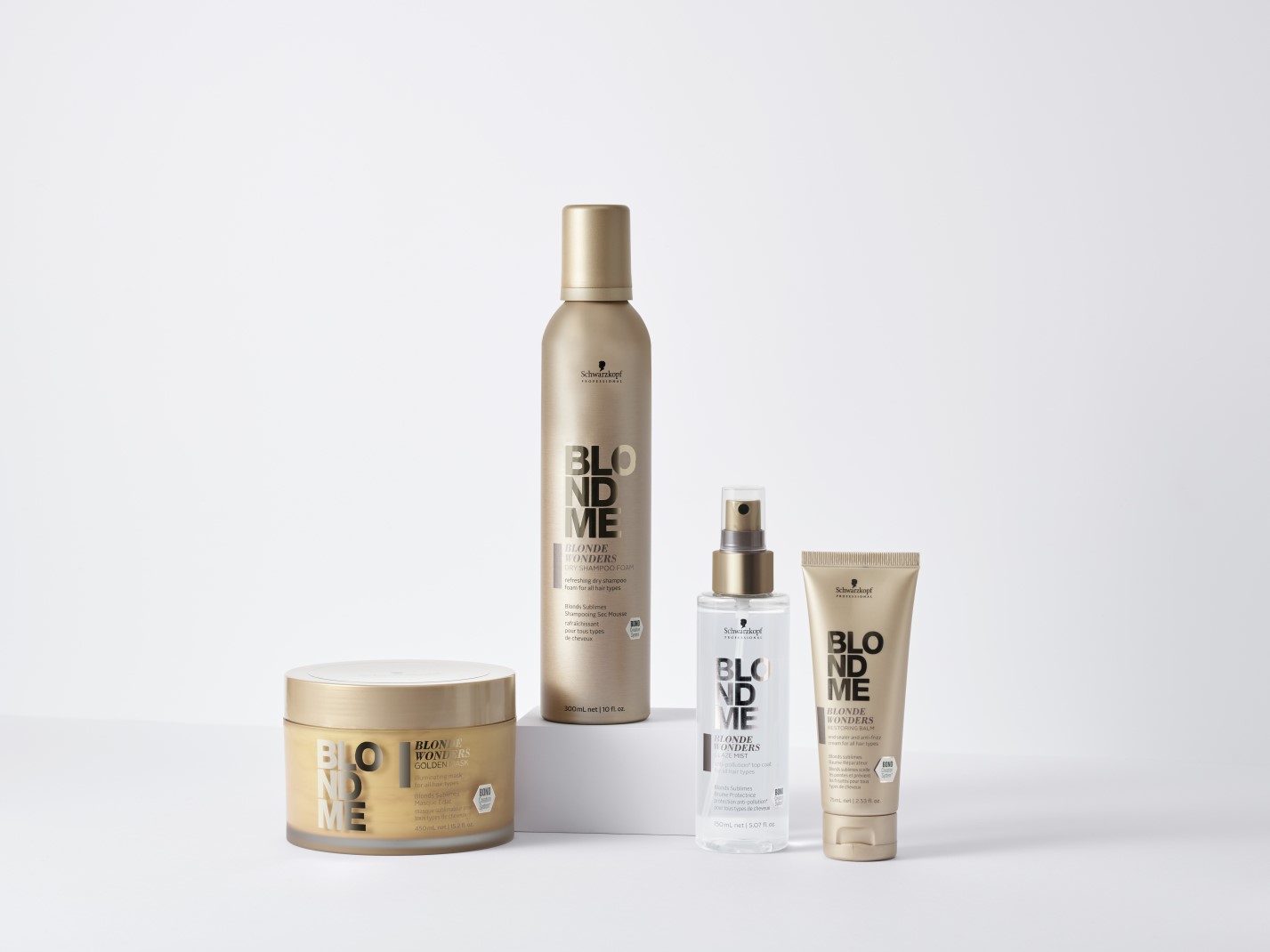 BlondMe linija za njegu najzahtjevnije, plave kose, poznata je po besprijekornim rezultatima, no i dalje inzistira na poboljšanjima i inovacijama. Tako su ovoga puta iz BlondMe linije predstavljena dva nova proizvoda, suhi šampon u pjeni (Dry Shampoo Foam) i maska (Golden Mask) koja učvršćuje unutarnju strukturu kose. Šampon za suho pranje uspješno otklanja višak masnoće i neugodne mirise, osvježava tonove plave, podiže volumen, omekšava vrhove i pri tome ne ostavlja nikakav trag, dok maska zaglađuje površinu vlasi i time osigurava sjaj. Tijekom upotrebe pretvara se iz kreme u pastu, kako bi se postigao efekt čahure, a ne utječe na boju.