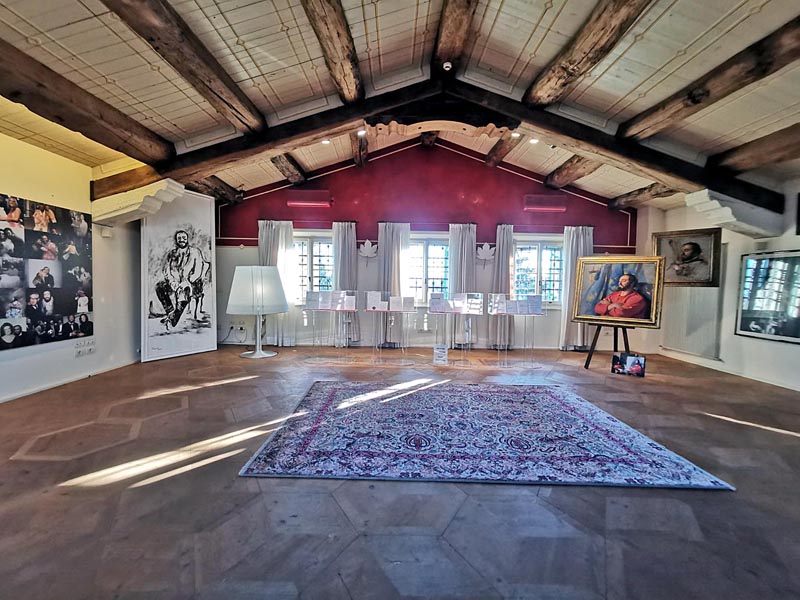U potkrovlju kuće nalazi se galerija sa zbirkom vrijednom divljenja. Tu ćete pronaći dio koji se odnosio na njegov scenski rad – originalne kostime poput onoga kojeg je nosio kao Turiddu u Cavalleriji Rusticani u Metropolitan Operi 1972., potom kostim iz opera La Bohème, Tosca, Don Giovanni i Rigoletta. Pavarottijeva kultna izvedba u Cavalleriji Rusticani naširoko se smatra jednim od najvećih trenutaka u povijesti opere. Tu ćete vidjeti i brojne nagrade i priznanja koje je dobio tijekom svoje karijere – čak četiri Grammy-a, potom Emmy i počast Kennedyjevog centra koja je jedna od najviših civilnih počasti koje se dodjeljuju pojedincu u Sjedinjenim Državama, a Pavarotti je dobio ovu čast 2001. Ostali izloženi predmeti uključuju znakove časti, originalne rukopise i partiture. Kroz cijelu kuću pratit će vas originalne fotografije, audio snimke i video zapisi, a u jednom dijelu je i knjižnica s 5000 knjiga o glazbi i operi. Uz svoj operni rad, Pavarotti je bio i predani filantrop, a svoj status slavne osobe koristio je za podizanje svijesti i sredstva za razne dobrotvorne svrhe. Podržavao je Crveni križ, Amnesty International, UNICEF i Memorijalni fond princeze Diane od Walesa, a svoju je platformu za kampanju protiv gladi i siromaštva, a bio je i glasni zagovornik prava izbjeglica i migranata. Godine 2001. dobio je UNESCO-vu nagradu Umjetnik za mir kao priznanje za njegov rad u ime mira i ljudskih prava.